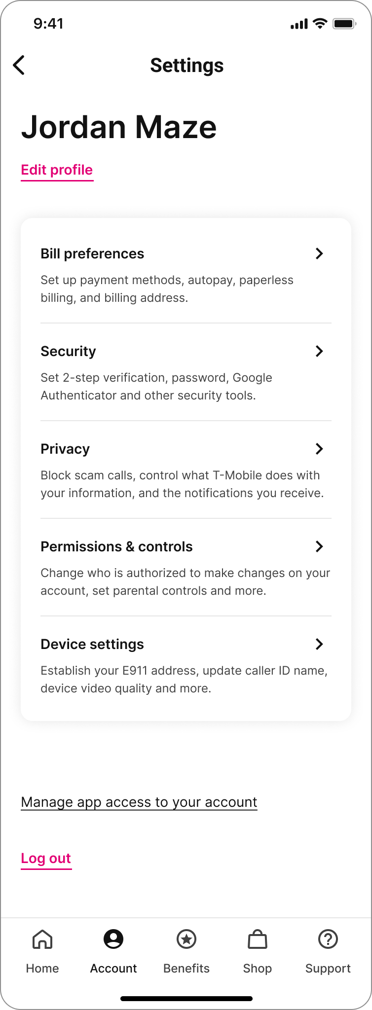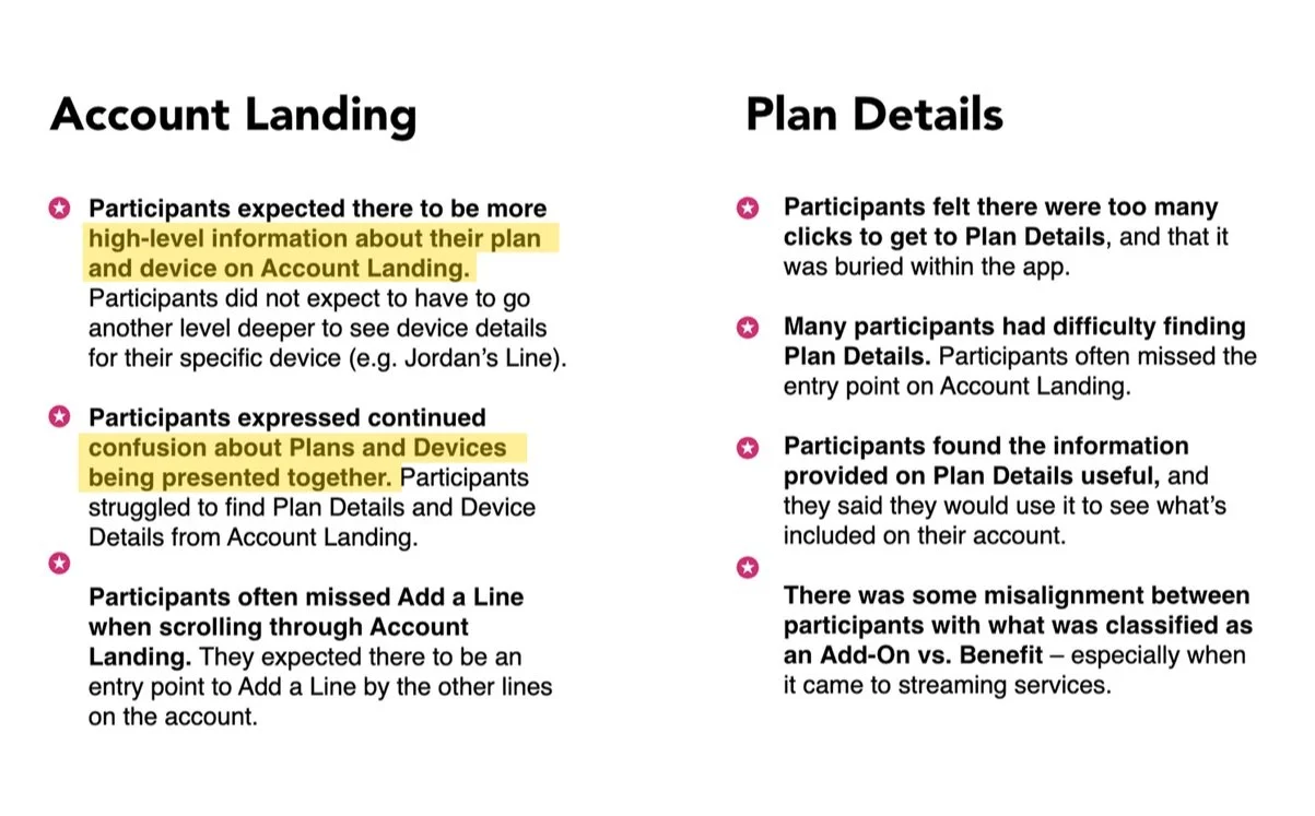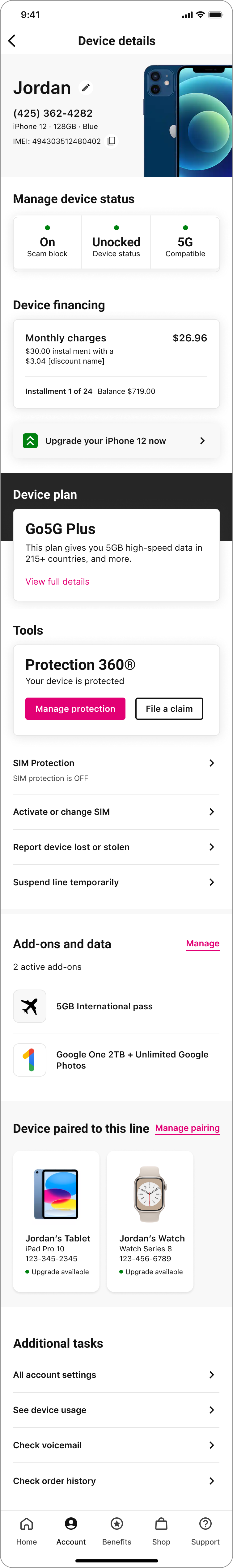 I led a team of two designers to identify the top four areas for native app development with consideration towards solving both user problems and keeping within technical feasibility. The redesign focused on four key areas: account landing, plan management, device information, and settings.