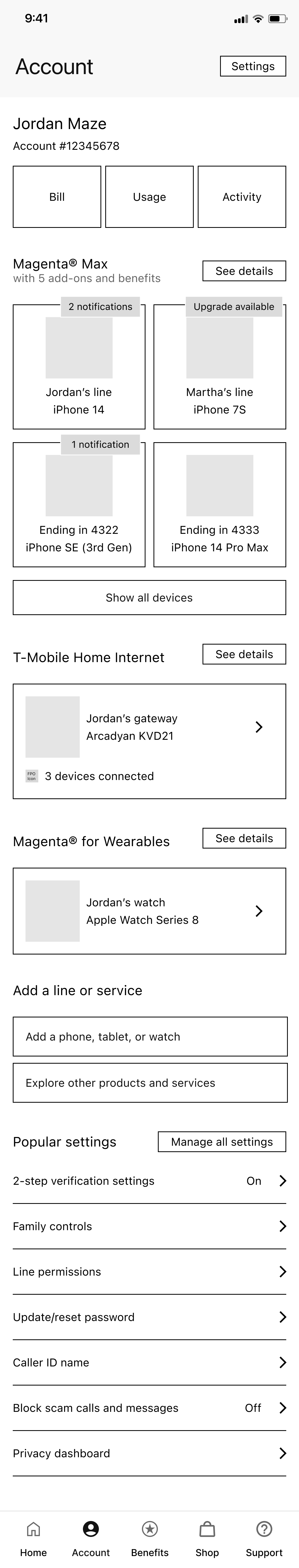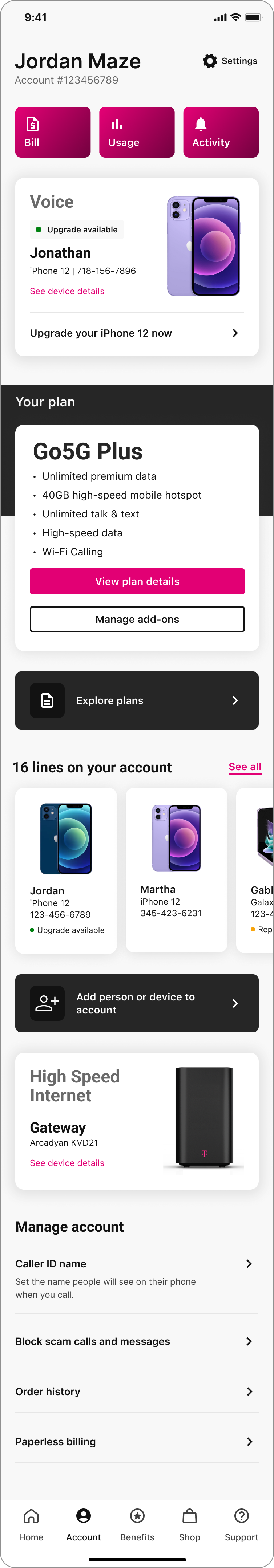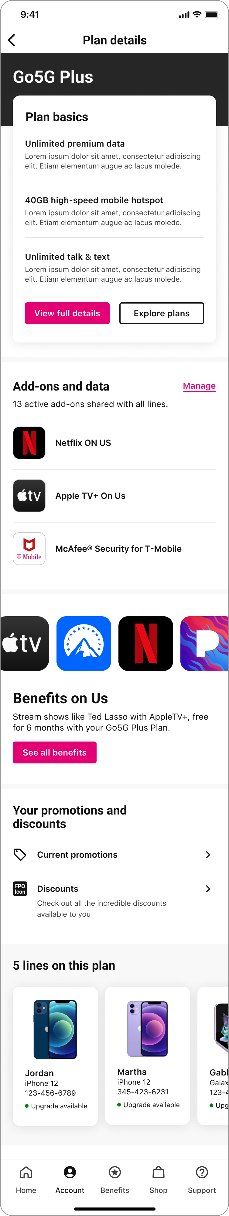 Together, we created a shared vision for a more intuitive, visually appealing experience that aligned with T-Mobile's new design system. The process not only yielded a superior product but also fostered a culture of open communication and shared ownership among team members, setting a new standard for cross-team collaboration in future projects.