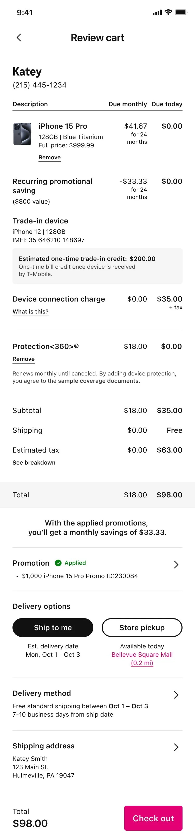 As soon as the full purchase flow concept was approved, the design team got to work on a high-fidelity prototype. We aimed to create a visual representation that would give the executive leadership a clear understanding of the proposed new experience, making it easier for them to understand the impact.