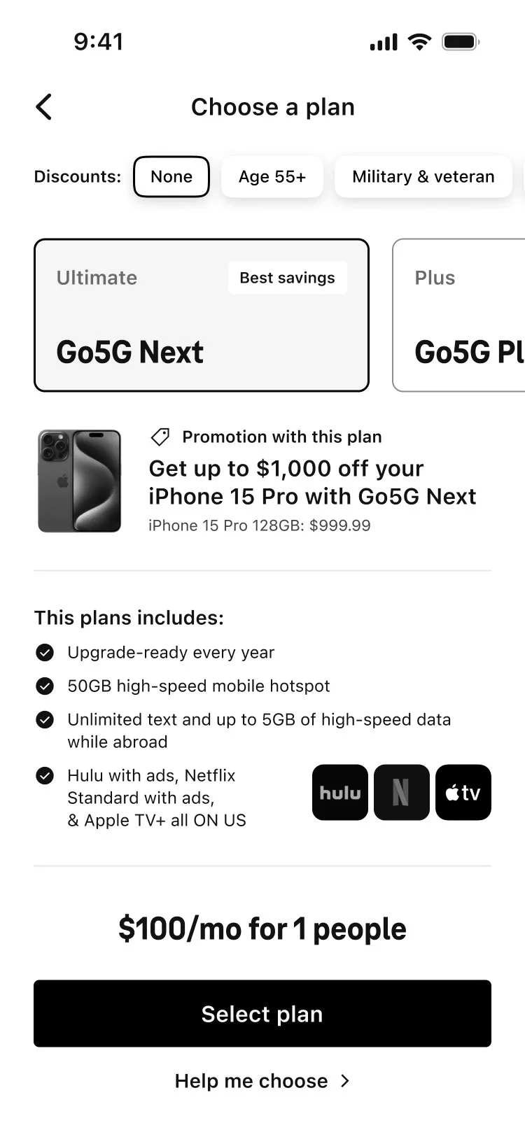 T-Mobile recognized a challenge in the digital purchase journey: potential customers were overwhelmed by the numerous device deal options, leading to confusion and high cart abandonment rates. To address this, a group of business strategy leaders collaborated with a small design team to develop a new approach. The goal was to create compelling visuals that would clearly communicate the value of the new concept and highlighting how it would simplify the decision-making process for customers.