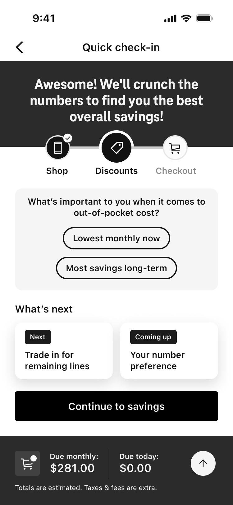 Implemented at key points of friction to orient customers, clarify their progress, and set expectations throughout the purchase process.
