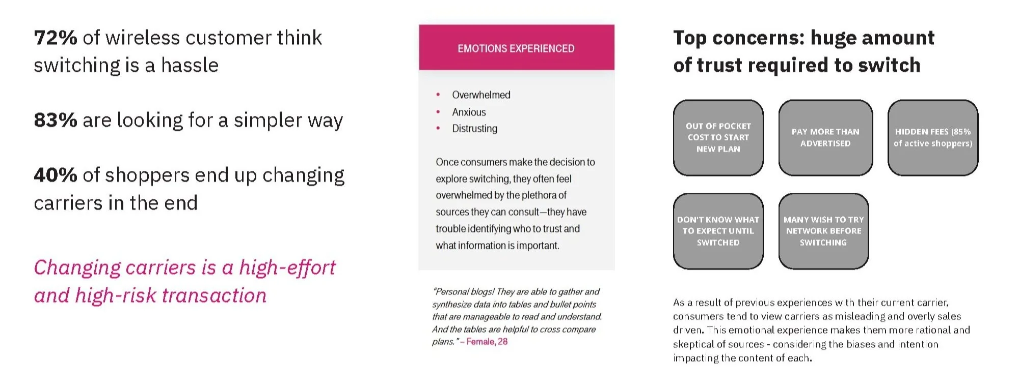 Recognizing the need to balance the business strategy team’s strong emphasis on quantitative data, I proactively created a comprehensive sentiment snapshot that effectively captured the emotional and qualitative aspects of the customer switching journey.